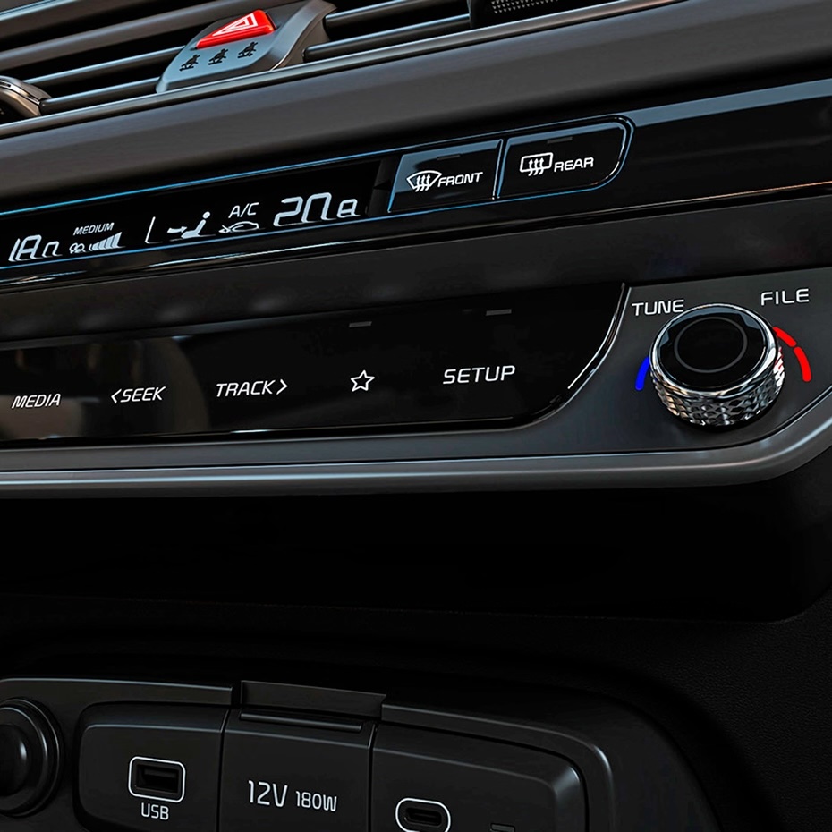 В список оборудования входит двухзонный климат-контроль с дефлекторами для пассажиров второго ряда, атмосферная подсветка салона с выбором из 64 оттенков, беспроводная зарядка для смартфона и люк.