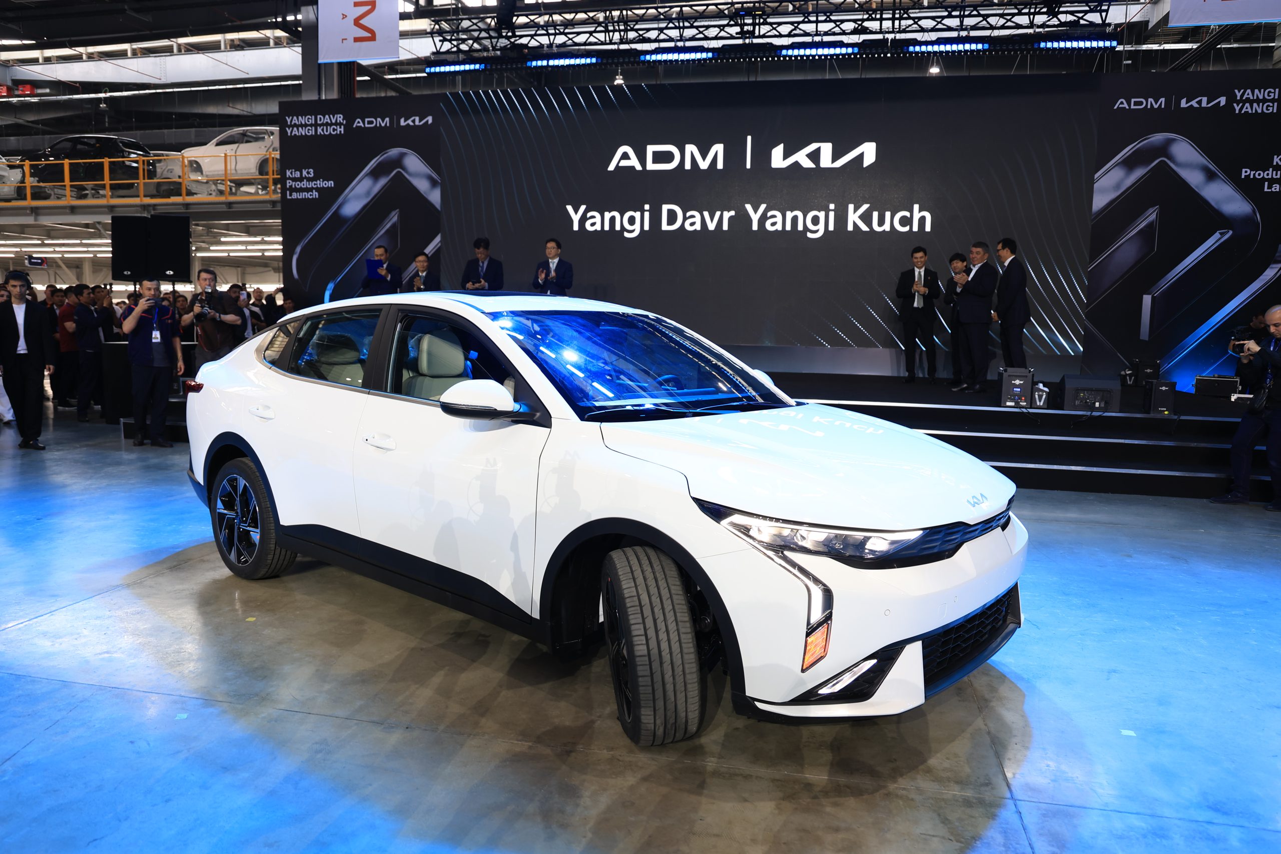 Завод ADM Jizzakh начал производство нового седана Kia K3. Премьера для узбекского рынка состоялась 27 апреля 2026 года, автомобиль уже представлен на официальном сайте дистрибьютора Kia.